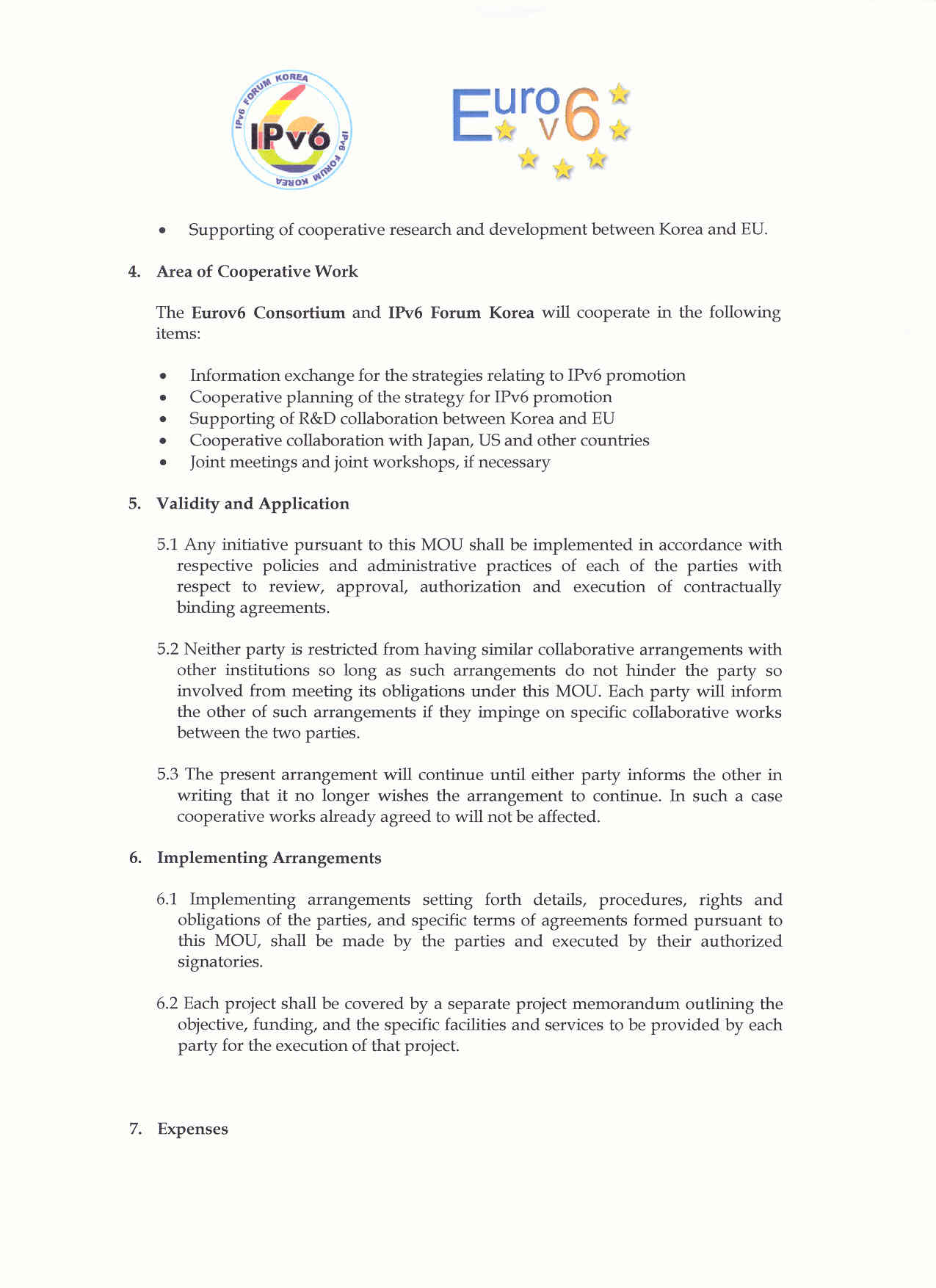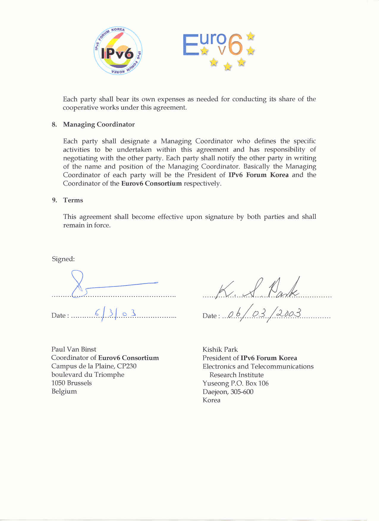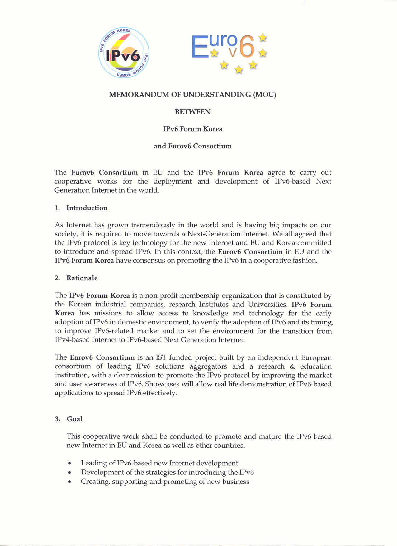 Eurov6 project has signed a co-operation agreement with Korean IPv6 promotion council.