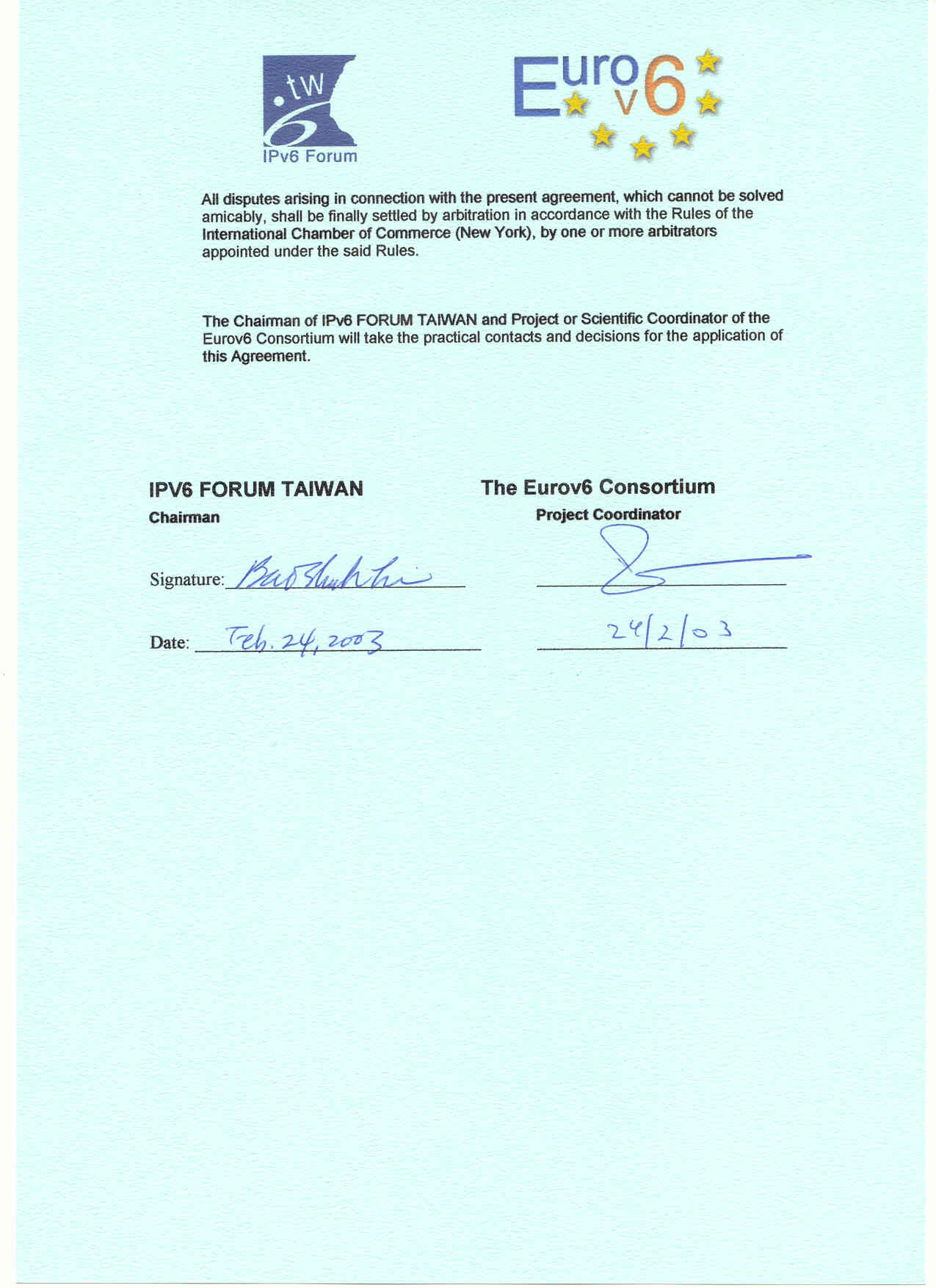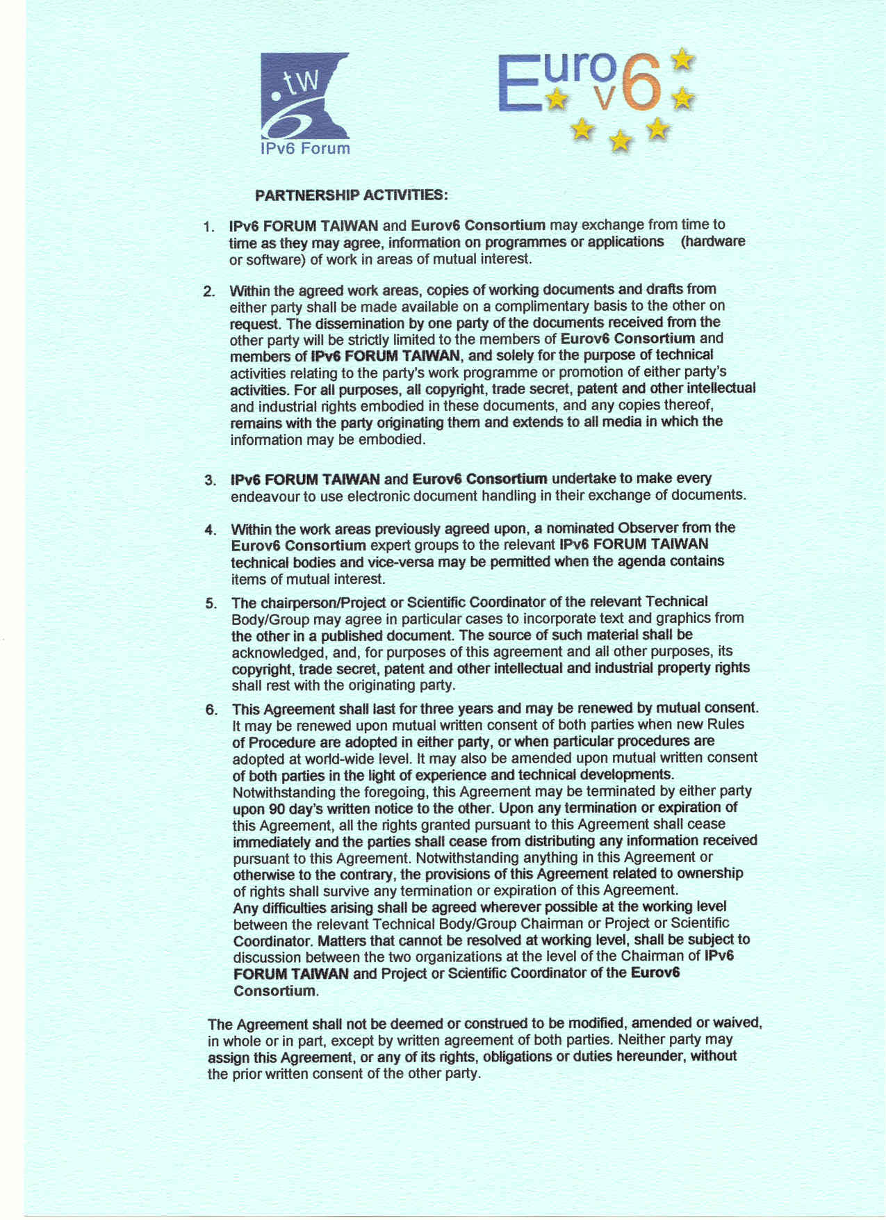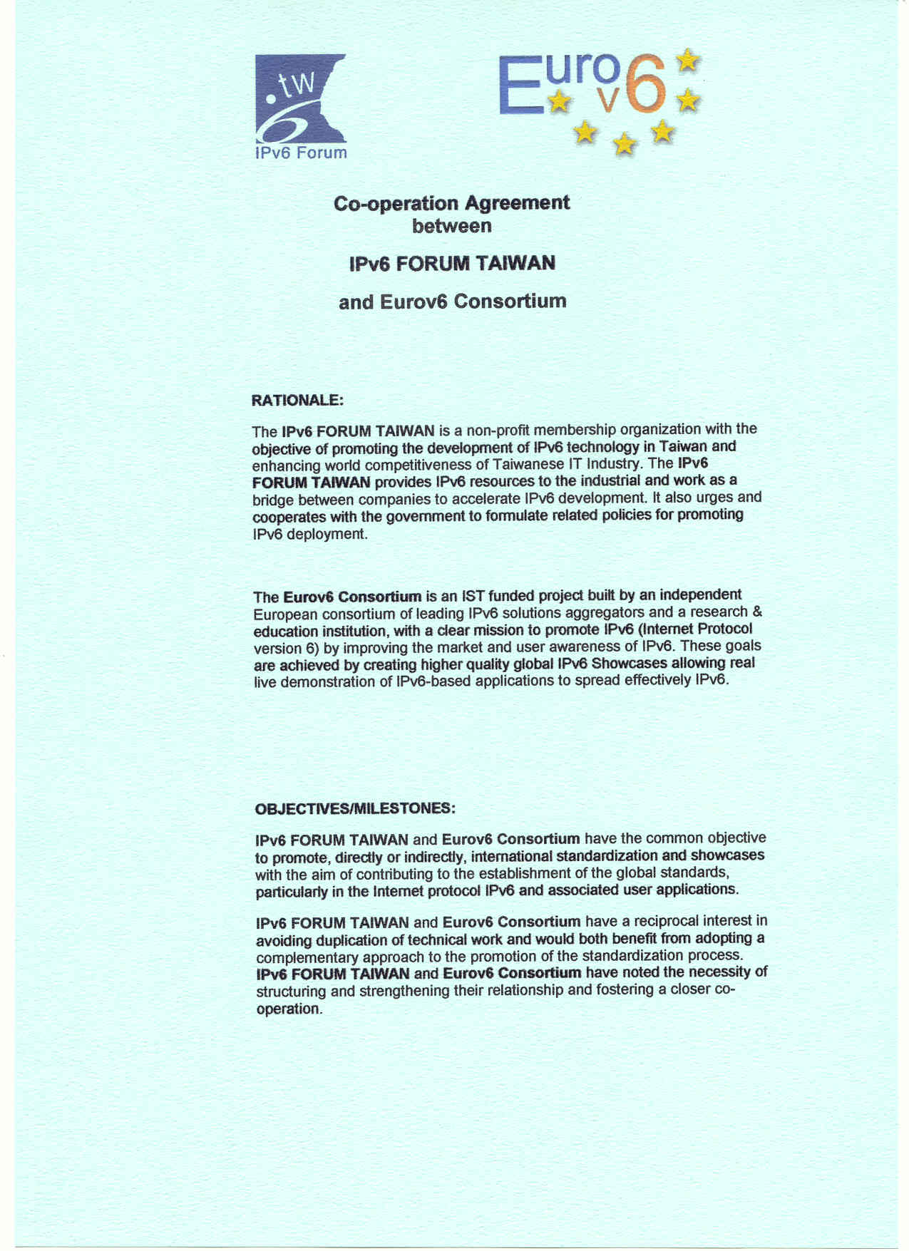 Co-operation Agreement - Taiwanese IPv6 promotion council